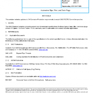 This SAE Standard includes complete general and dimensional specifications for those types of pipe, filler, and drain plugs (shown in Figures 1 to 6 and Tables 1 to 4) commonly used in automotive and related industrial applications.