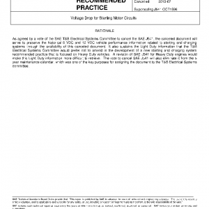 The scope of this SAE Recommended Practice is to describe the maximum recommended voltage drop for starting mortor circuits for 6 V through 32 V starters.