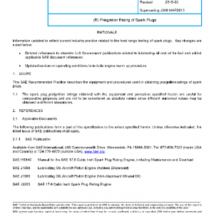 This SAE Recommended Practice describes the equipment and procedures used in obtaining preignition ratings of spark plugs.