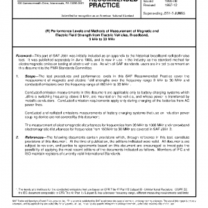 The test procedures and performance levels in this SAE Recommended Practice cover the measurement of magnetic and electric field strengths over the frequency range 9 kHz to 30 MHz and conducted emissions over the frequency range of 450 kHz to 30 MHz1.