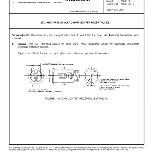 This SAE Standard covers the basic cigar lighter receptacle, which may optionally incorporate overload protective devices.