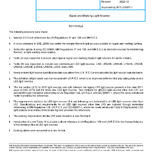 Most signal and marking lighting devices have light sources (bulbs), which can be based on either filament or LED technology. To assure field replacement, it is important that light source types employed be readily available in normal service channels. This document defines the physical, electrical, and photometric characteristics necessary to achieve a proper replacement for popular types of signal and marking light sources.