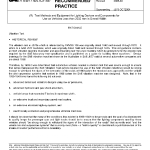 This SAE Recommended Practice provides standardized laboratory tests, test methods, and requirements applicable to many of the lighting devices and components covered by SAE Recommended Practices and Standards and is intended for reference for devices used on vehicles less than 2032 mm in width, regardless of length, or 7620 mm in length regardless of width. Tests for vehicles larger than 2032 mm in overall width are covered in J2139.