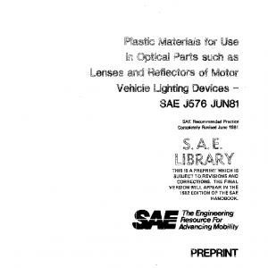 This SAE Recommended Practice provides test methods and requirements to evaluate the suitability of plastic materials intended for optical applications in motor vehicles. The tests of this recommended practice are intended to determine physical and optical characteristics of the material only. Performance expectations of such a finished assembly, including its plastic components, are to be based on tests for lighting devices, as specified in SAE Standards and Recommended Practices for motor vehicle lighting equipment. Field experience has shown that plastic materials meeting the requirements of this standard and molded in accordance with good molding practices will produce durable lighting devices.