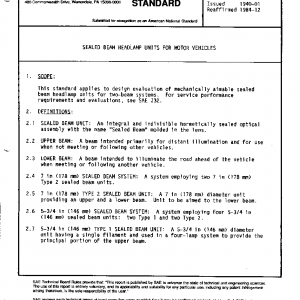 Sealed Beam Headlamp Units for Motor Vehicles(Cancelled Mar 1992)