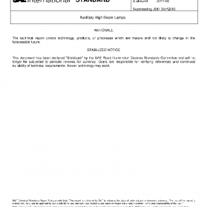 This SAE Standard provides test procedures, performance requirements and guidelines for auxiliary high beam lamps.