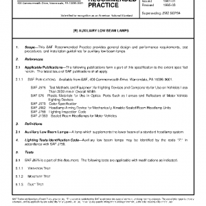 This SAE Recommended Practice provides general design and performance requirements, test procedures, and installation guidelines for auxiliary low beam lamps.