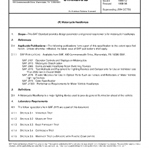 This SAE Standard provides design parameter and general requirements for motorcycle headlamps.