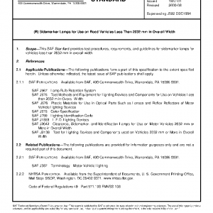 This SAE Standard provides test procedures, requirements, and guidelines for sidemarker lamps for vehicles less than 2032 mm in overall width.