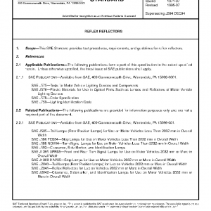 This SAE Standard provides test procedures, requirements, and guidelines for reflex reflectors.