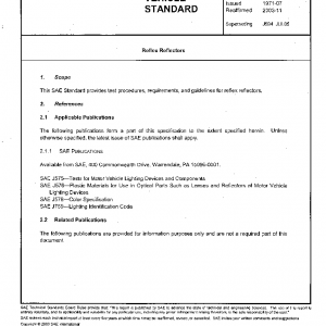 This SAE Standard provides test procedures, requirements, and guidelines for reflex reflectors.