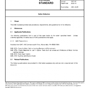 This SAE Standard provides test procedures, requirements, and guidelines for reflex reflectors.