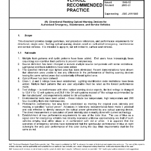 This document provides design guidelines, test procedure references, and performance requirements for directional, single color, flashing optical warning devices used on authorized emergency, maintenance and service vehicles. It is intended to apply to, but not limited to, surface land vehicles.