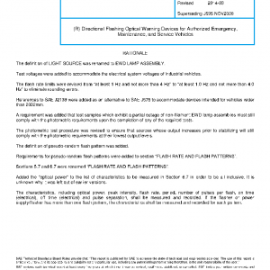 This document provides design guidelines, test procedure references, and performance requirements for directional, single color, flashing optical warning devices used on authorized emergency, maintenance and service vehicles. It is intended to apply to, but not limited to, surface land vehicles.