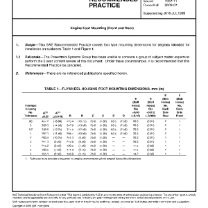 This SAE Recommended Practice covers foot type mounting dimensions for engines intended for installation on subbases (See Table 1 and Figure 1).