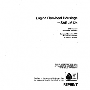 This SAE standard defines flywheel housings and mating flange configuration for industry standardization, interchangeability, and compatibility.
