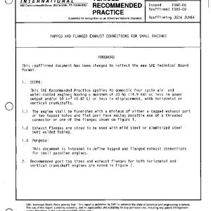 This SAE Recommended Practice applies to domestic four-cycle air- and water-cooled engines having a maximum of 20 hp (14.9 kW) or less in power output and/or 50 in3 (0.82 L) or less in displacement, with horizontal or vertical crankshafts.