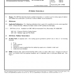 This SAE Standard documents standard nomenclature in common use for various types of radiator and radiator core construction, as well as for various radiator-related accessories.