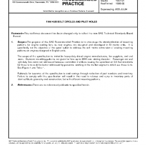 The purpose of this SAE Recommended Practice is to encourage the standardization of mounting patterns for engine cooling fans as new engines are designed and developed in SI metric units. It is specifically not the objective of the specification to address the soft metric conversion of existing mounting patterns on engines designed in English units.