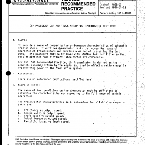 To provide a means of comparing the performance characteristics of automatic transmissions. It outlines dynamometer tests that cover the range of operation of transmissions and provides a method of presenting the test data. This procedure must be followed with similar test facilities so that results obtained from different laboratories are comparable.