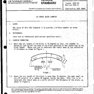 The scope of this SAE Standard is to provide a uniform chamfer on brake blocks.