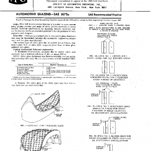 This SAE Recommended Practice is intended to cover current safety glazing practice and usage of safety glazing materials in motor vehicles. Nominal specifications for thickness, flatness, curvature, size, and fabrication details are included principally for the guidance of body engineers and designers.