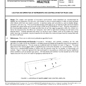 The location and operation of instruments and controls herein described are recommended for adoption by manufacturers of trucks and truck-tractors in new or revised designs in order to avoid confusion when drivers shift from one truck to another, to promote safety and convenience, and to simplify design, production, and servicing. This recommended practice shall apply to all on-highway trucks and truck-tractors equipped with power brake systems and having a GVW rating of 26 000 lb or more. Of prime importance in this recommended practice is the basic premise that all controls requiring operation while the vehicle is in motion be located so that the driver can manipulate them with his right hand and keep his left hand on the steering wheel. Controls operated only when the vehicle is not in motion, such as the ignition key, starter switch, and engine shutdown, may be located at the left side of the instrument panel and be manipulated with the driver’s left hand.