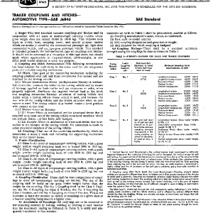 This SAE Standard includes couplings and hitches used in conjunction with all types of nonpassenger carrying trailers whose gross weight does not exceed 10,000 lb (4540 kg). This includes such types as utility, boat, camping, travel, and special purpose trailers which are normally towed by the conventional passenger car, light-duty commercial vehicle, and multipurpose passenger vehicle. This standard is intended primarily for ball-and-socket type of couplings and hitches. It should not be construed as a limitation to this type alone, but should apply where appropriate to ring-and-pintle, clevis-and-pin, or any other draft means designed to serve this purpose.