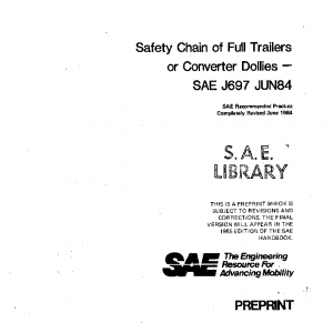 This SAE Recommended Practice covers the number, location, and method of attachment of safety chains for full trailers and/or converter dollies.