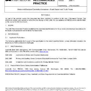 This SAE Recommended Practice establishes the recommended locations for the air brake and electrical connections for the back of a truck-tractor and the front of a truck-trailer.