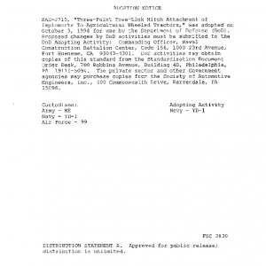 This SAE Standard sets forth requirements for the attachment of three-point hitch implements or equipment to the rear of agricultural wheeled tractors by means of a three-point free-link in association with a power lift.