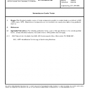 This Standard provides provides names of major components peculiar to crawler tractors as defined in SAE J1057a (June, 1975). Illustrations of components are not intended to be exactly descriptive of any particular machine.