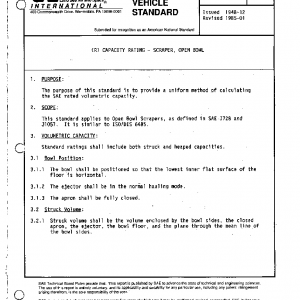 This standard applies to Open Bowl Scrapers, as defined in SAE J728 and J1057. It is similar to ISO/DIS 6485.