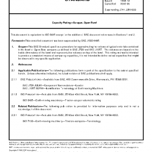 This SAE Standard specifies a procedure for approximating the volume of typical materials contained in the bowl of Open Bowl scrapers as defined in SAE J728 and SAE J1057. The volumes are based on the inside dimensions of the bowl and representative volumes on top of the bowl. This rating method is intended to provide a consistent means of comparing capacities; it is not intended to define actual capacities that might be observed in any specific application.
