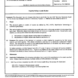 This standard applies to buckets of loaders (as defined by SAE J1057a, Identification Terminology of Earthmoving Machines).