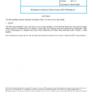 This SAE Recommended Practice has been set up by Subcommittee 4 of the Off-Road Machinery Technical Committee and is primarily for directional control valves on construction and industrial machinery equipment as referenced in SAE J1116. The purpose is to establish port area to flow relationship and match valve spool eye ends in relation to rated capacity.