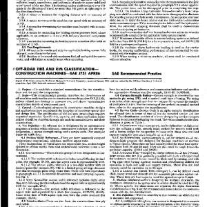 This recommended practice describes the classification of off-road tires and rims for use on construction machines (see SAE J1116), defines related terminology in common use, and shows representative construction details of component parts.