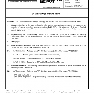Instructions on this chart are intended to be used as a ready reference by personnel responsible for servicing off-road self-propelled work machines described in SAE J1116, categories 1, 2, 3, and 4. Detailed maintenance and service guidelines are reserved for maintenance, operator, and lubrication manuals as defined in SAE J920.