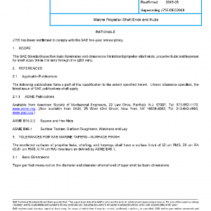 This SAE Standard specifies basic tolerances and dimensions for inboard propeller-shaft ends, propeller hubs and keyways for shaft sizes 3/4 in (19 mm) through 8 in (203 mm).