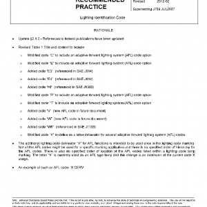 This SAE Recommended Practice provides the lighting function identification codes for use on all passenger vehicles, trucks, trailers, motorcycles, and emergency vehicles.