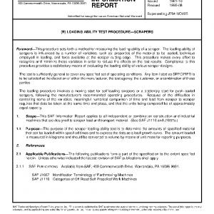 This SAE Information Report applies to all independent or combination construction and industrial machines that are designed to scraper-load and transport material. (See SAE J1116 and J1057a.)