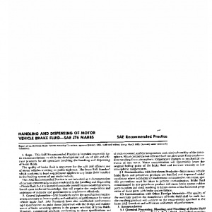 This SAE Recommended Practice is intended to provide basic recommendations to aid in the development and use of safe and efficient practices for all operations involving the handling and dispensing of brake fluids.