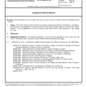This report relates to recommendations and specifications governing the classification, composition, test procedures, and properties of printed circuits commonly used to replace cable in automotive low voltage systems. It is not applicable to miniature circuits for solid state devices, high impedance or high voltage functions.