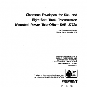 This standard covers the dimensions of clearance envelopes for Regular and Heavy Duty Type Truck Transmission Power Take-Offs and is applicable to the chassis clearance required immediately adjacent to the power take-off openings on truck transmissions.