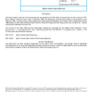 Technical content contained in this document was last revised by the SAE Body Engineering Committee in August 1976. Minor editorial reversions were made in February 1980. No subsequent changes were made to this document since February 1980. The SAE Human Accomodation and Design Devices Standards Committee in 2014 determined that the 1980 version of SAE J782 contained useful historical seat terminology and technology which was not dynamic in nature and therefore stabilized this document.