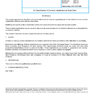 Illustrations and definitions of these imperfections are contained in this SAE Information Report. The identifying names are those commonly used throughout the steel industry. The imperfections identified include the major and most often encountered imperfections known to exist at this time. These imperfections are variable in appearance and severity. Extreme conditions have been selected in some instances in order to obtain suitable photographs.