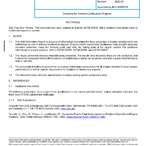 This SAE Information Report is a source of information concerning the basic properties of engine coolants which are satisfactory for use in internal combustion engines. Engine coolant concentrate (antifreeze) must provide adequate corrosion protection, lower the freezing point, and raise the boiling point of the engine coolant. For additional information on engine coolants, refer to ASTM D3306, ASTM D4985, and ASTM D6210.
