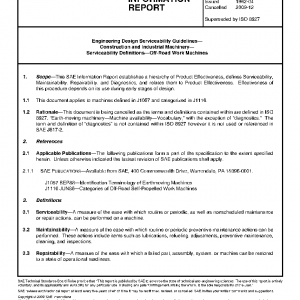 Engineering Design Serviceability Guidelines–Construction and Industrial Machinery–Serviceability Definitions–Off-Road Work Machines(Cancelled Dec 2009, Superseded by ISO 8927)