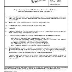 Engineering Design Serviceability Guidelines–Construction and Industrial Machinery–Maintainability Index–Off-Road Work Machines(Cancelled Dec 2009)