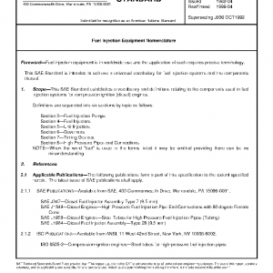 This SAE Standard establishes a vocabulary and definitions relating to the components used in fuel injection systems for compression ignition (diesel) engines.